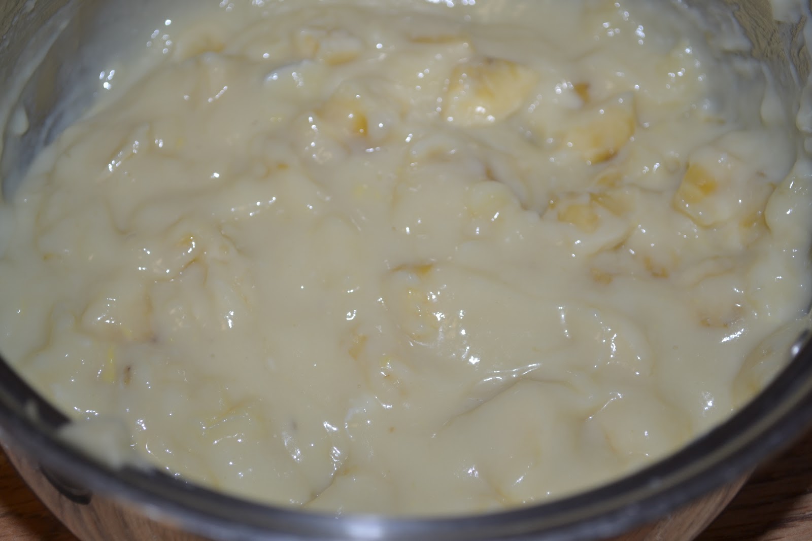 Beat bananas, sugar, butter, vanilla, sour cream and eggs... |